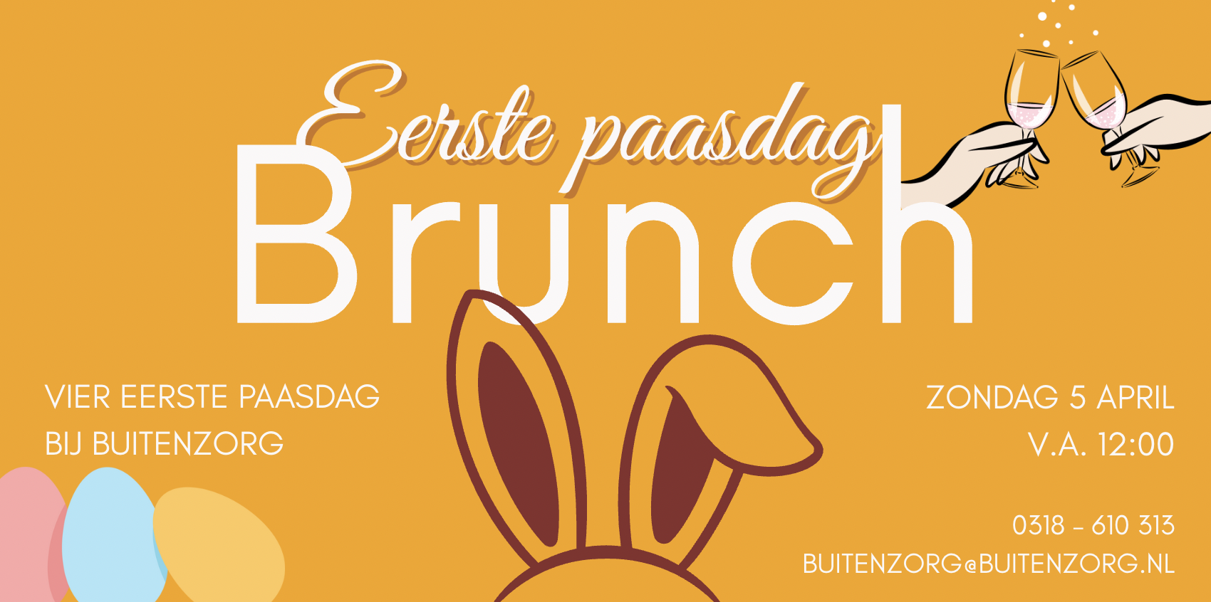 Omdat de paasbrunch bij Buitenzorg elk jaar erg populair is, raden we aan om tijdig een tafel te reserveren. Dit kan eenvoudig door te mailen of even te bellen: